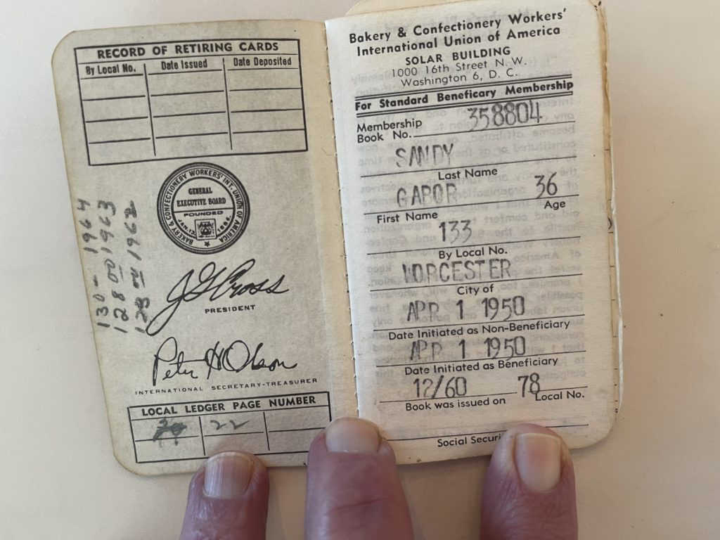 After the war my mother and father left Hungary for a displaced person’s camp in Germany, Bergen-Belsen, where I was born in 1947. In 1949 the three of us were able to emigrate to the United States and settle in Worcester MA, were Dad got a job at the Widoff Bakery. This bakery was a union shop, so my Dad had to join the Bakery and Confectionary Workers International Union Local 33. The “International” in its name was because the union had Canadian locals. This union was one of the earliest craft unions in the United States. It started in 1886.