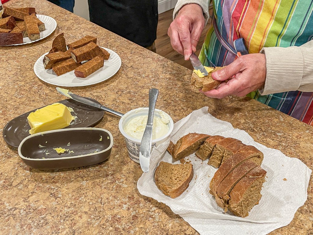 We tasted the pumpernickel and a surprise bonus bread. Sidney brought in a Swedish Limpa bread flavored with molasses and anise
